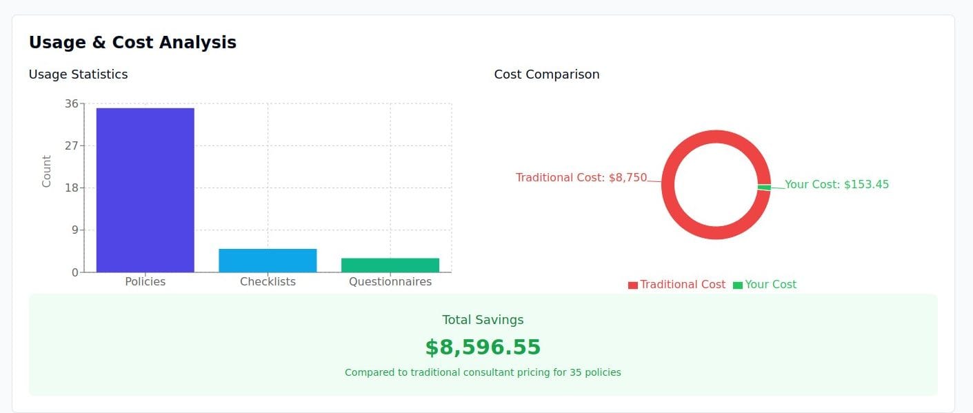 - Startups and SMBs: Organizations that may lack dedicated resources for policy creation.- Cybersecurity Consultants: Professionals who need to quickly generate policies for their clients.- Managed Security Service Providers (MSSPs): To efficiently create and manage policies for multiple clients.- Compliance Officers: Individuals responsible for ensuring regulatory adherence.- Anyone tasked with maintaining up-to-date security documentation and policy compliance.