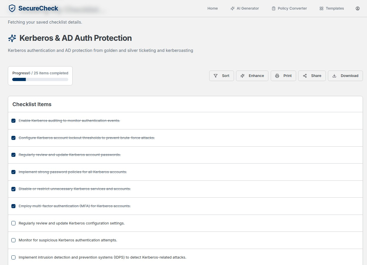 SecureCheck - AI Powered Cybersecurity Checklists