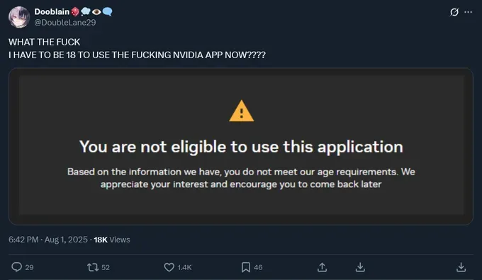 United Kingdom: The UK’s Online Safety Act has reached absurd new heights. Young adults are now reporting they cannot adjust their NVIDIA graphics card settings on gaming PCs because they’re not yet 18. This isn’t satire—it’s the reality of age verification gone mad, where basic computer functionality requires identity verification.