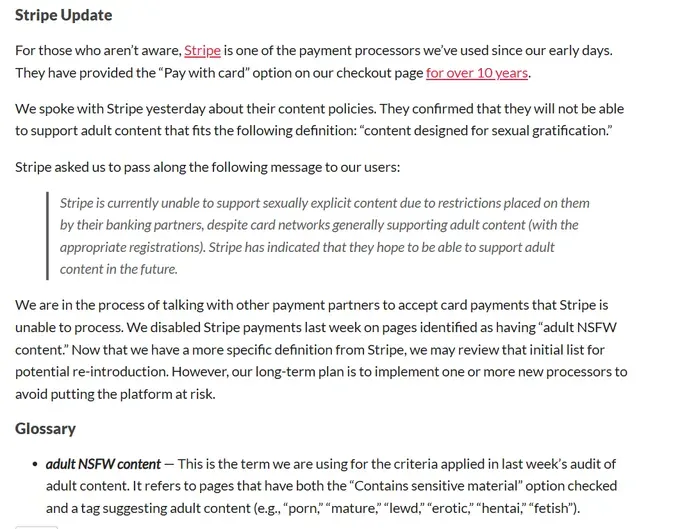 The recent Itch.io incident perfectly illustrates this dynamic. The gaming platform was forced to delist adult content after pressure from payment processors, specifically citing Stripe’s inability to process payments for “sexually explicit content” due to banking partner restrictions. However, after massive public backlash, Itch.io announced they would be relisting the content while continuing negotiations with payment processors. This small victory shows that resistance is possible, but the underlying threat remains.