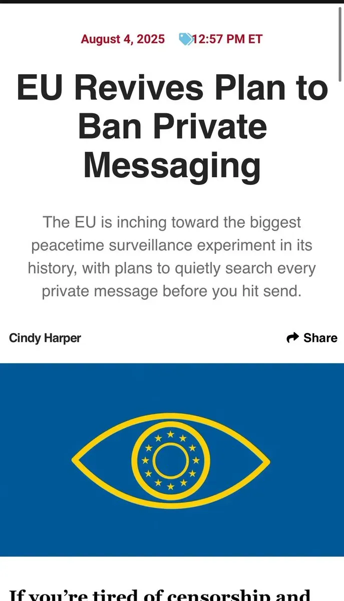 The European Union has quietly revived its most controversial surveillance proposal yet. As reported on August 4, 2025, the EU is moving forward with plans to scan every private message before users hit send—what critics are calling “the biggest peacetime surveillance experiment in its history.” This isn’t just about monitoring public posts; it’s about infiltrating the most intimate digital communications between citizens.