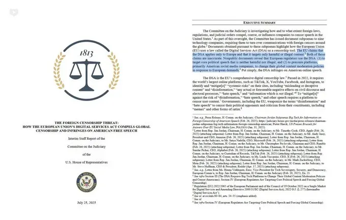 The timing is no coincidence. This resurrection comes as the EU’s Digital Services Act continues to pressure U.S. tech companies to enforce global censorship standards, even affecting American political speech. According to a U.S. House Judiciary report obtained in July 2025, the DSA has become a tool for extraterritorial control, forcing platforms to apply EU censorship rules worldwide.