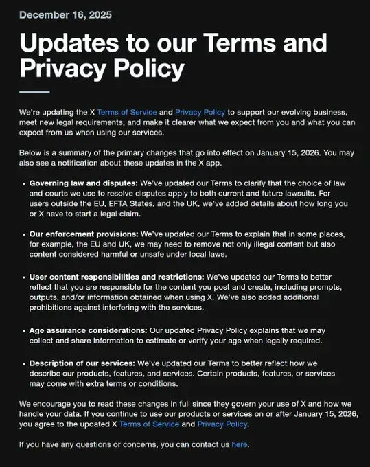 The December 2025 update to X’s Terms of Service contains a critical new provision that represents a fundamental departure from the platform’s previous positioning: